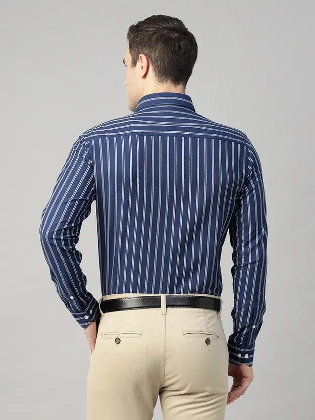 Men Slim Fit Striped Spread Collar Formal Shirt