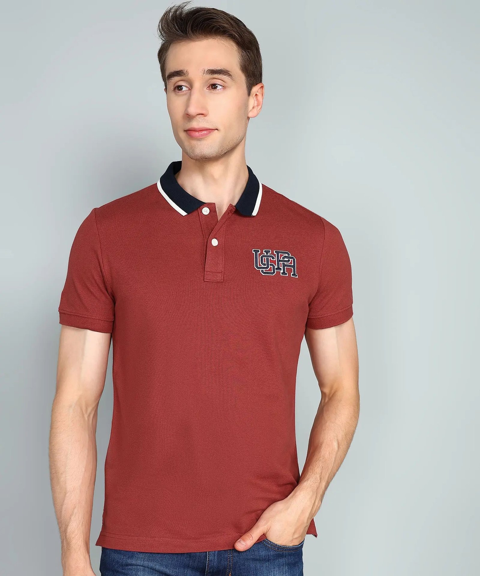 Men Solid Polo Neck Pure Cotton Red T-Shirt