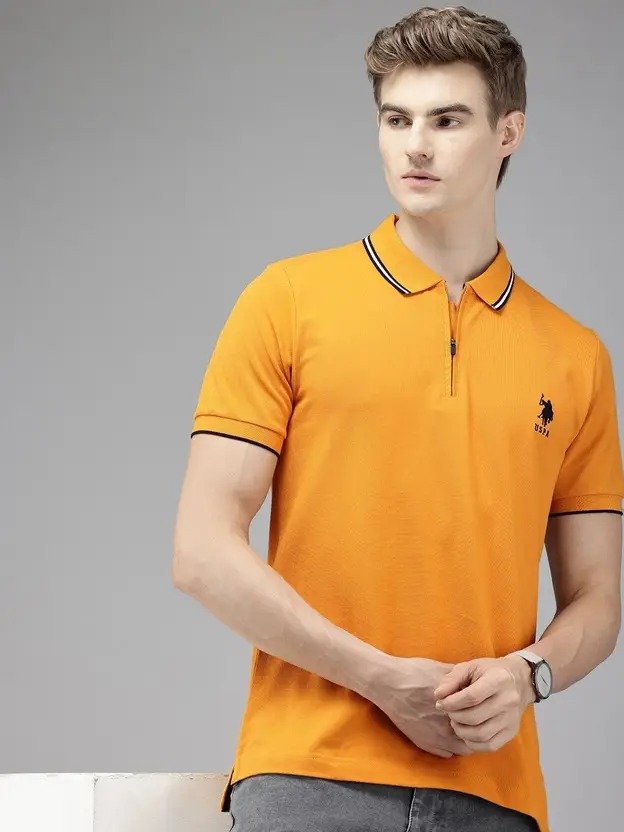 Men Striped Polo Neck Pure Cotton Yellow T-Shirt