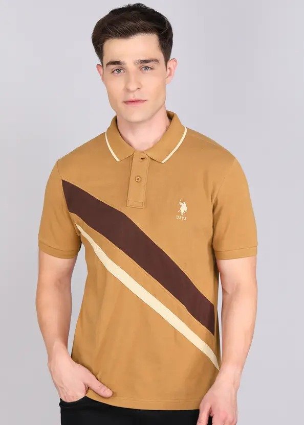 Men Solid Polo Neck Pure Cotton Yellow T-Shirt