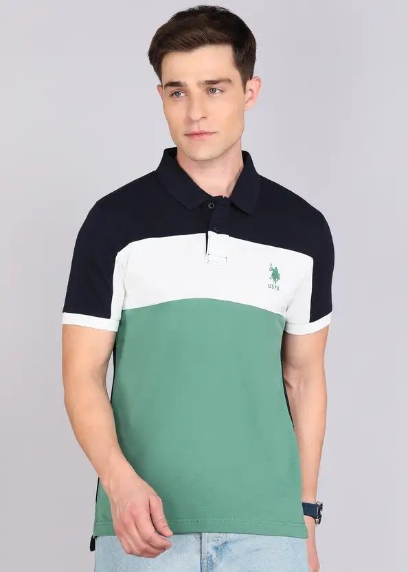 Men Colorblock Polo Neck Pure Cotton Green T-Shirt