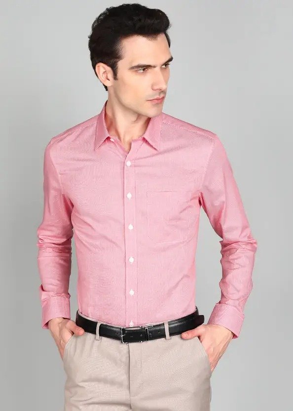 Men Slim Fit Self Design Spread Collar Formal Shirt