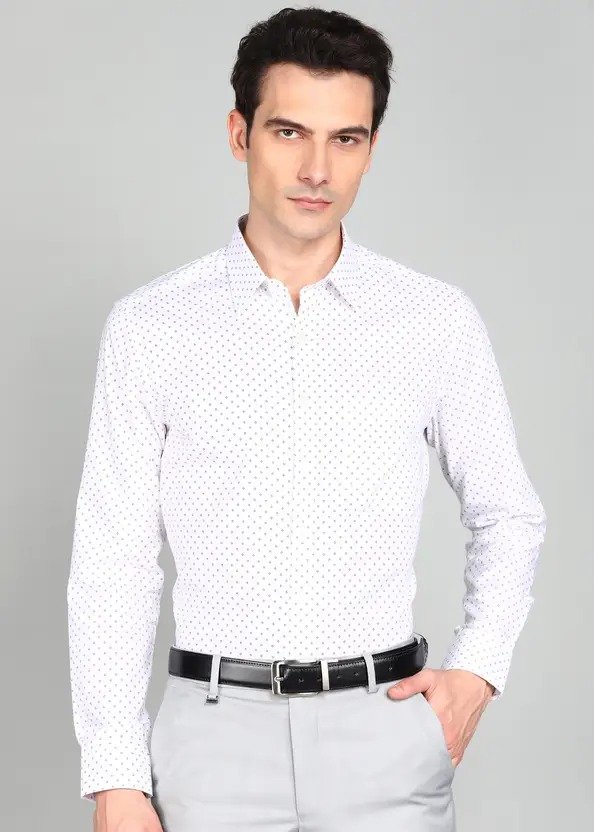 Men Slim Fit Printed Spread Collar Formal Shirt
