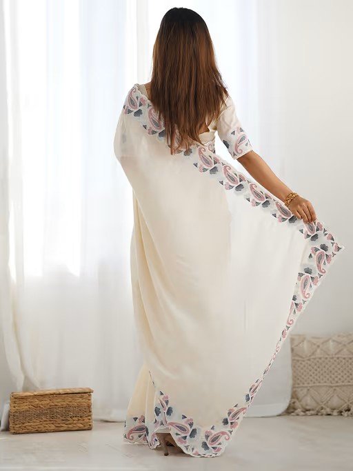 Wear This Satrani Off White Silk Blend Embroidered Saree In Your Any Occasion with Pair Of Beautiful Jewellery and High Heel and Look Stunning Saree Length 5.50 Mtr , Blouse : 0.80 Mtr | Saree Width : 44 Inch