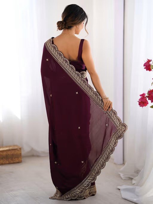 Sareemall Women Vichitra Silk Purple Embellished Saree with Unstitched Blouse