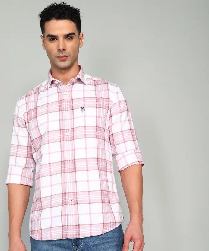 Men Slim Fit Checkered Cut Away Collar Casual Shirt