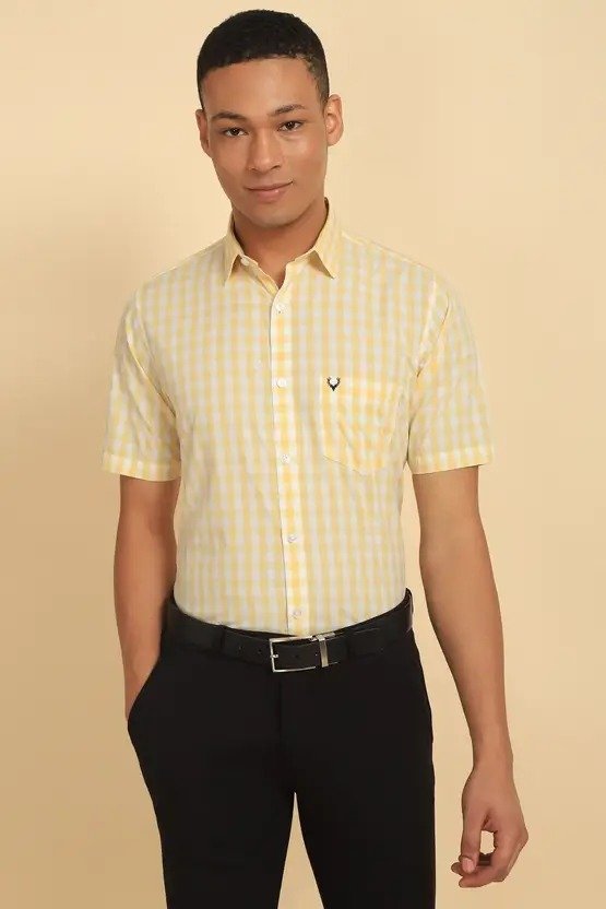 Men Slim Fit Checkered Spread Collar Formal Shirt