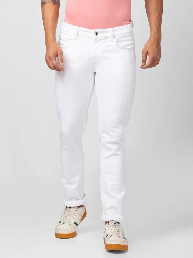 Men Regular Mid Rise White Jeans