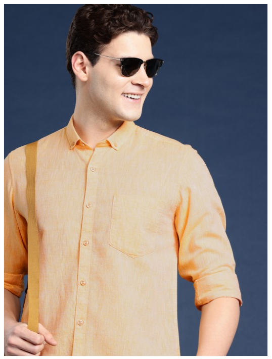 Orange solid opaque Casual shirt ,has a button-down collar, button placket, 1 patch pocket, long regular sleeves, curved hem
