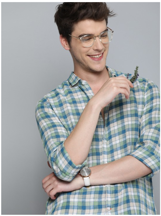 Men Blue & Green Regular Fit Checked Casual Linen Shirt