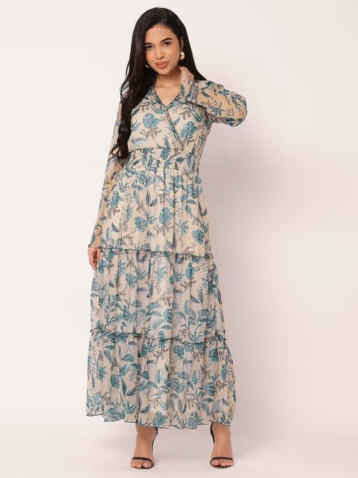 Enhance your style this season with this Moomaya Women Blue Floral Maxi Dress. Crafted from breathable fabric, it features an elegant design and offers exceptional comfort. Pair it with heels and minimal jewelry for a chic appearance.