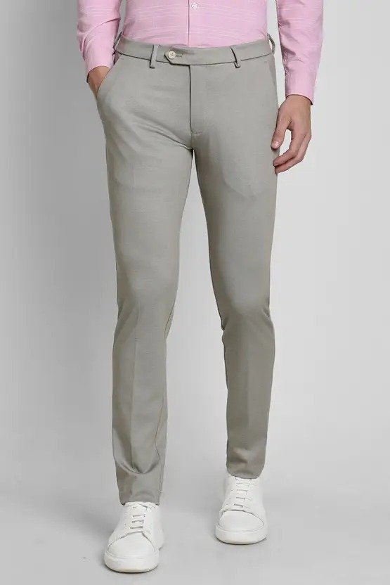 Men Slim Fit Grey Polyester Trousers