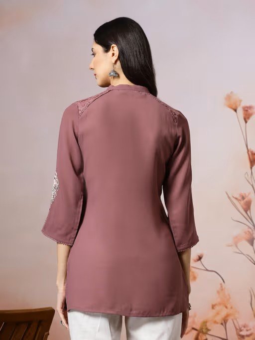 Embroidered Straight Crepe Tunic for Women