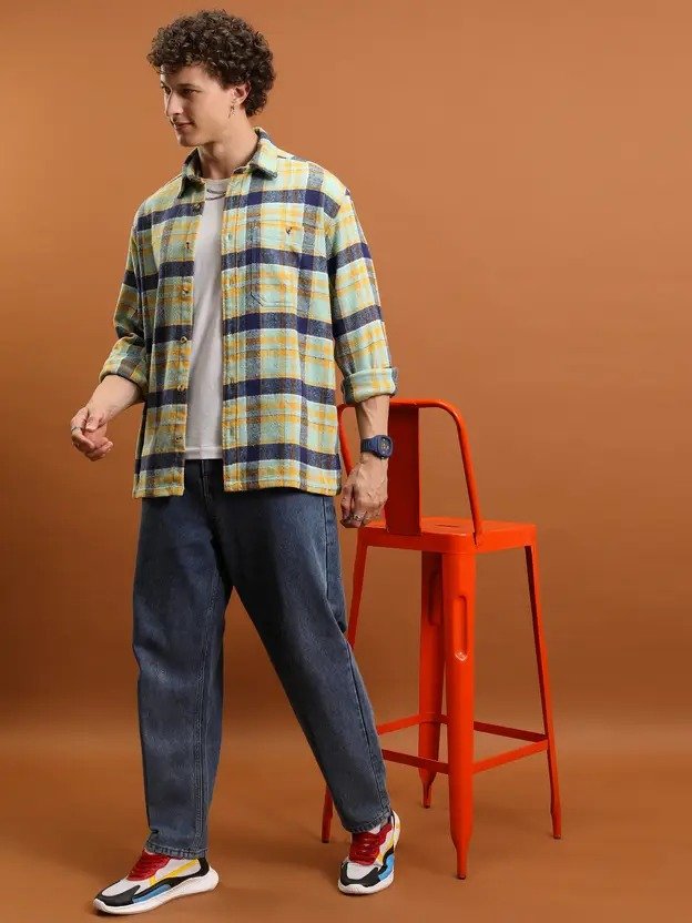 Men Relaxed Fit Fit Checkered Spread Collar Casual Shirt