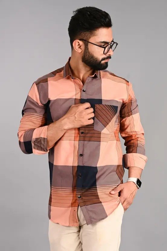 Men Regular Fit Checkered Spread Collar Casual Shirt