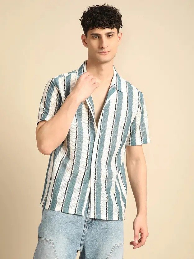 Men Regular Fit Striped Lapel Collar Casual Shirt