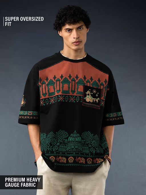 Originals: Kurukshetra Men Super Oversized Black T-shirt