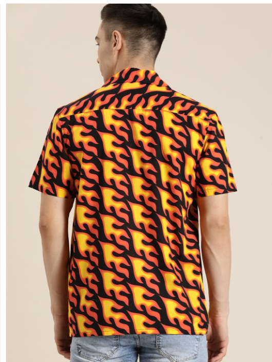 Yellow abstract printed opaque Casual shirt ,has a cuban collar, button placket, short regular sleeves, straight hem