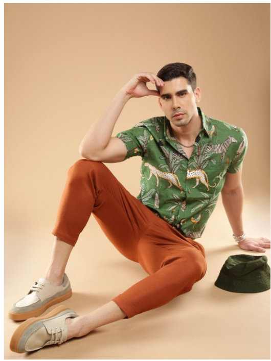 Green and yellow jungle-printed regular-fit casual shirt ,has a spread collar, button placket, 1 patch pocket, short sleeves, curved hem