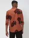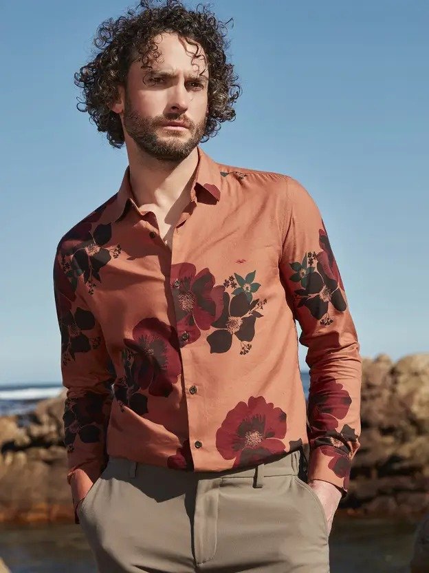 Men Slim Fit Floral Print Spread Collar Casual Shirt