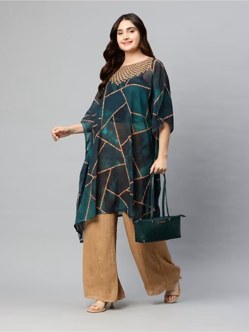 Women Printed Boat Neck Flared Sleeves Beach Wear Green Kaftan