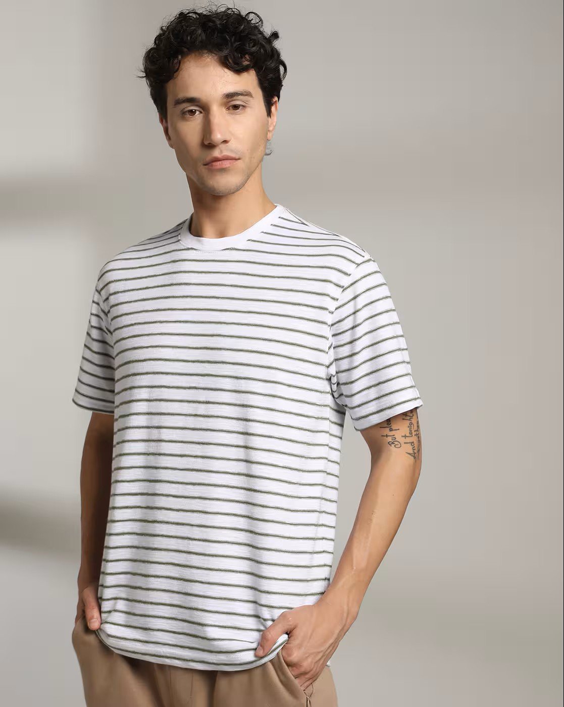 Men Striped Regular Fit Crew-Neck T-Shirt