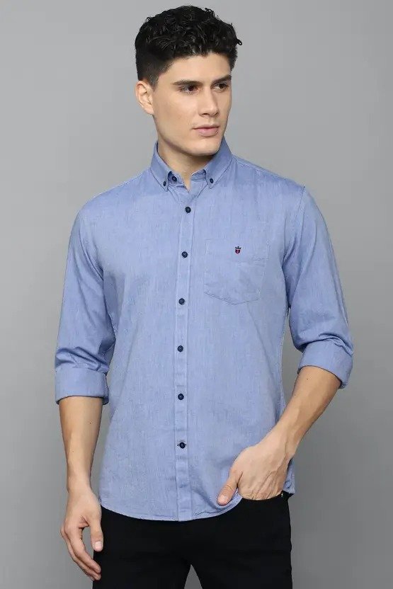 Men Slim Fit Solid Button Down Collar Casual Shirt