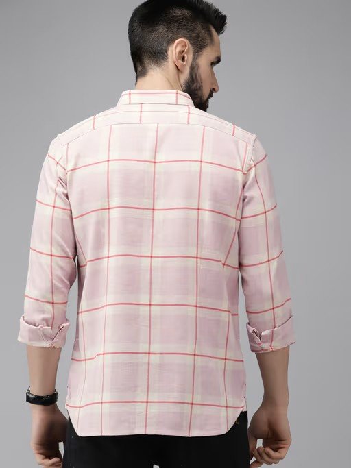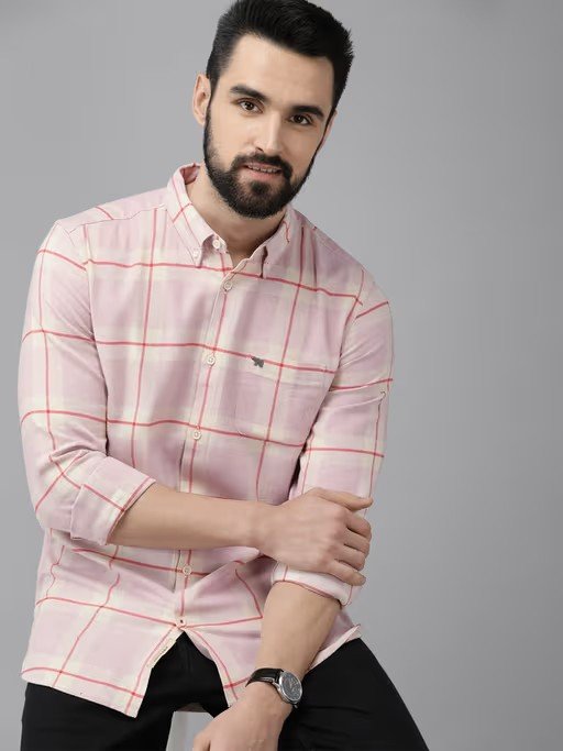 THE BEAR HOUSE Men Pink Checked Cotton Casual Shirt