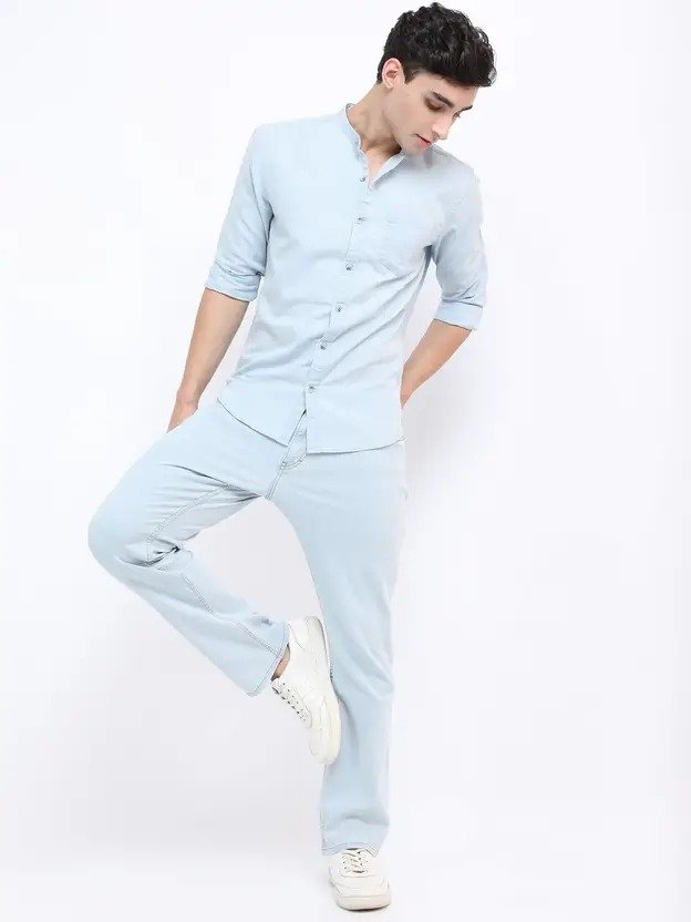 Men Slim Fit Solid Mandarin Collar Casual Shirt