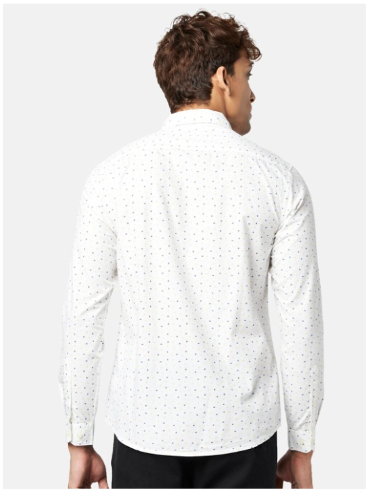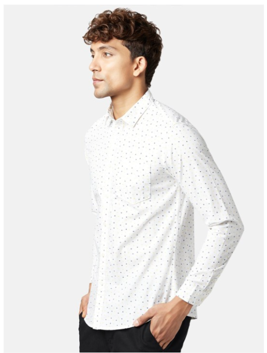 Micro ditsy printed opaque Casual shirt ,has a spread collar, button placket, 1 patch pocket, long regular sleeves, curved hem