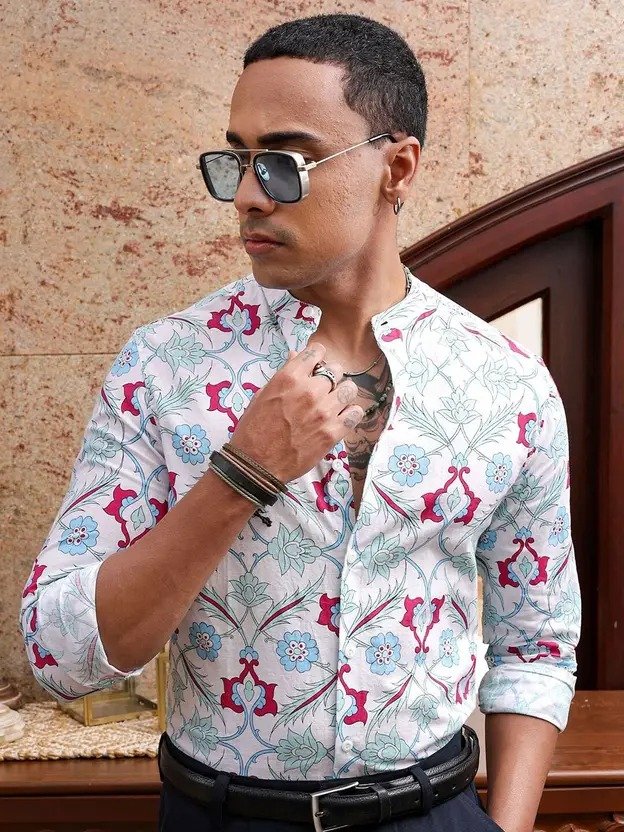 Men Slim Fit Printed Mandarin Collar Casual Shirt