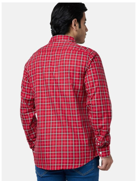 Turquoise blue checked opaque casual shirt ,has a spread collar, button placket, long regular sleeves, curved hem