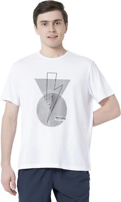 Men Graphic Print Round Neck Polyester White T-Shirt