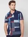 Men Geometric Print Cotton Navy Blue T-Shirt