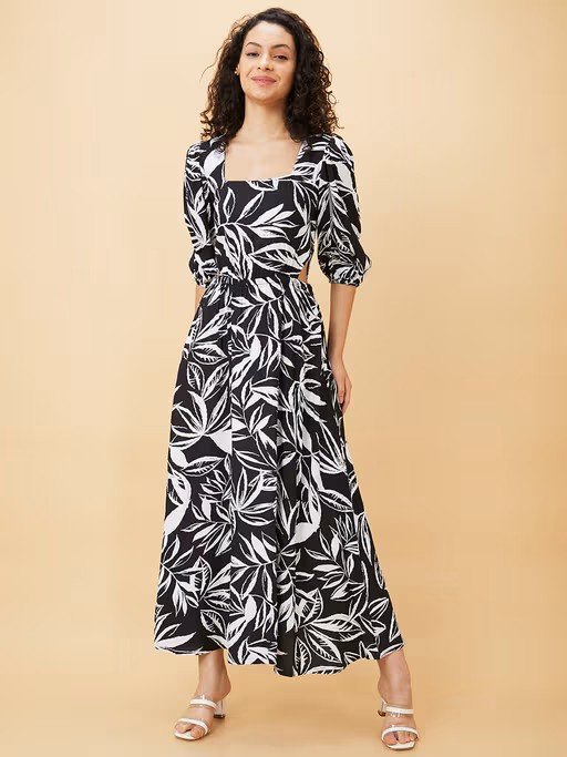 Flaunt your style with this black and white maxi dress from Globus. Featuring a square neck, three-quarter and printed pattern, this dress holds a superlative attractiveness. Team this dress with a pair of sandals to look effortlessly stylish.