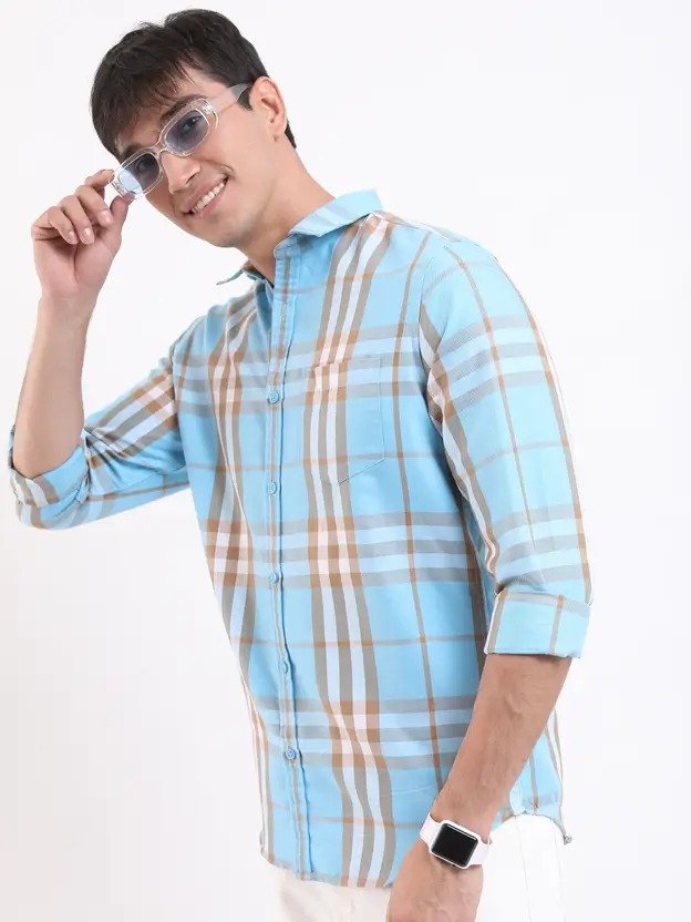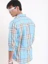 Men Slim Fit Checkered Cut Away Collar Casual Shirt