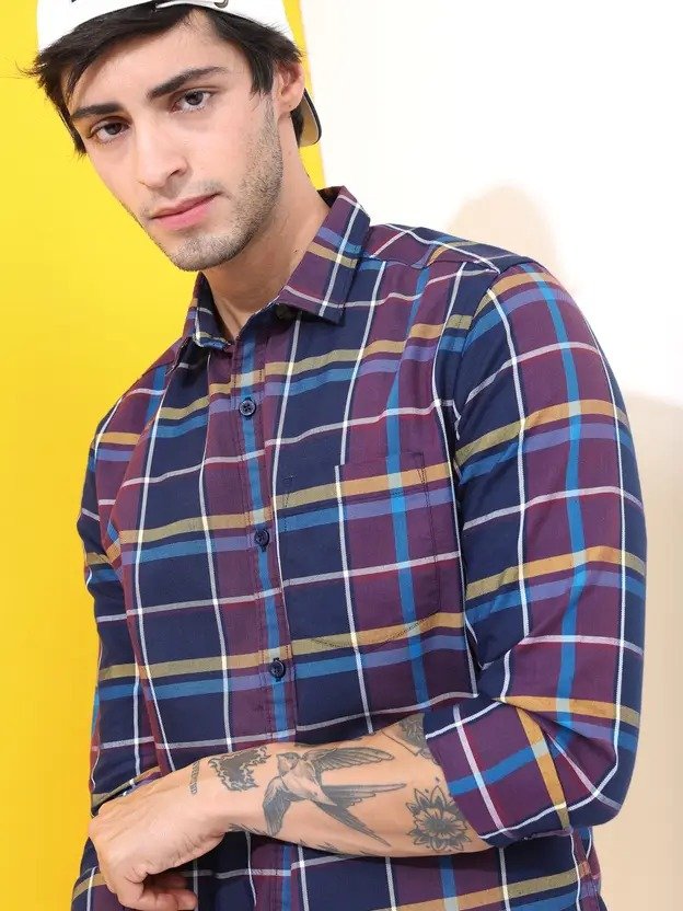 Men Slim Fit Checkered Spread Collar Casual Shirt