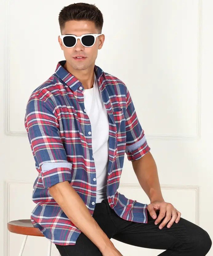 Men Slim Fit Checkered Spread Collar Casual Shirt