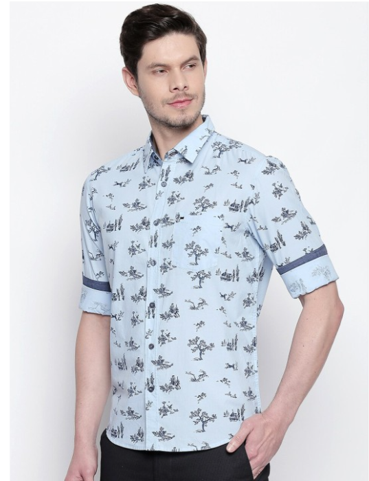 Blue conversational printed opaque Casual shirt ,has a spread collar, button placket, 1 patch pocket, long regular sleeves, curved hem