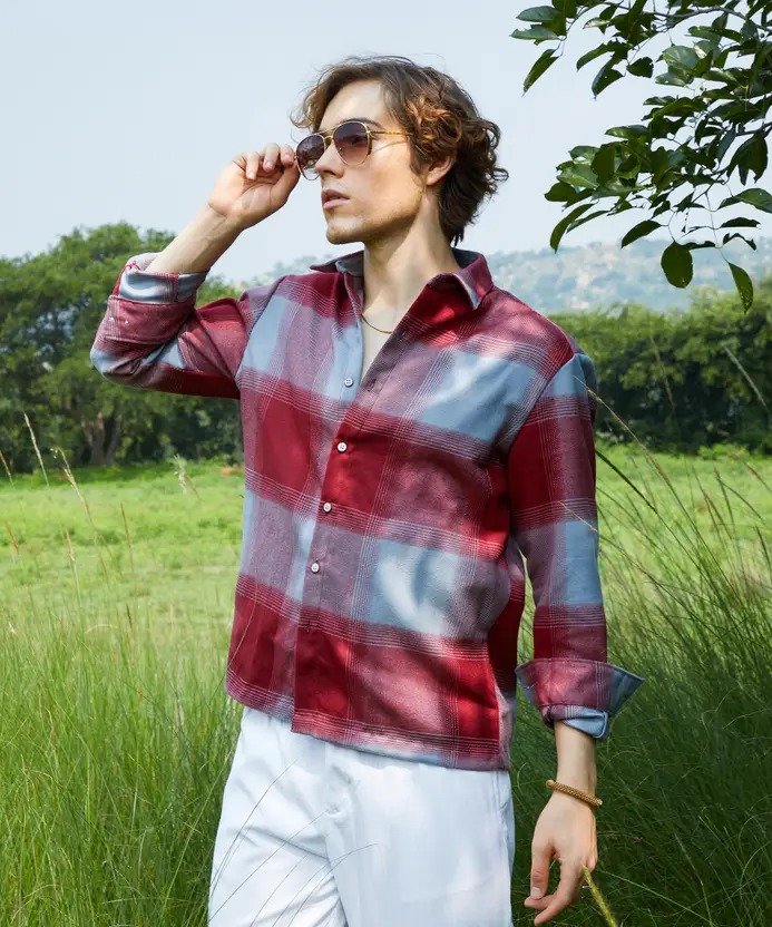 Men Oversized Fit Self Design Spread Collar Casual Shirt