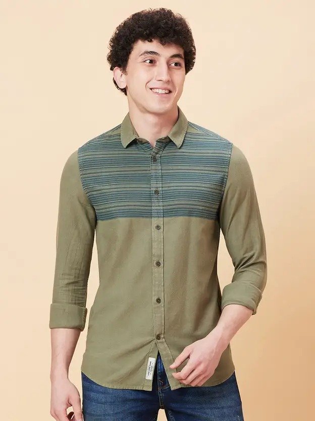 Men Slim Fit Striped Spread Collar Casual Shirt