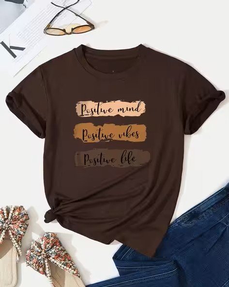 Women Typographic Print Oversized Fit Round-Neck T-Shirt