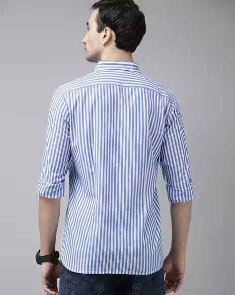 Men Striped Slim Fit Shirt with Button-Down Collar