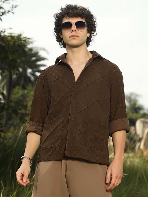 Men Coffee Brown Crosshatch-Tactile Oversized Shirt