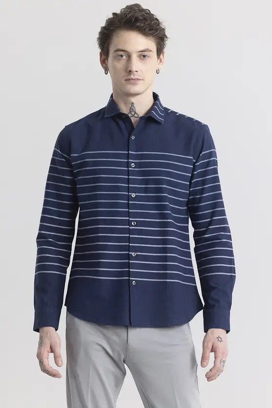 Men Slim Fit Striped Spread Collar Casual Shirt