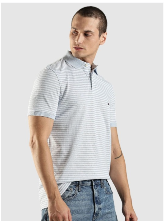Striped Polo Collar Cotton T-shirt