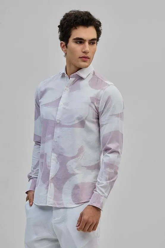 Men Slim Fit Printed Spread Collar Casual Shirt