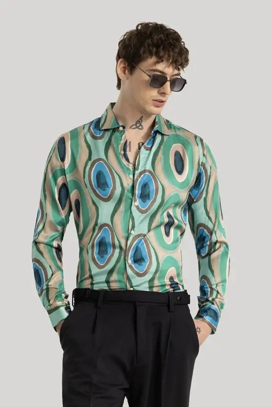 Men Slim Fit Printed Spread Collar Casual Shirt