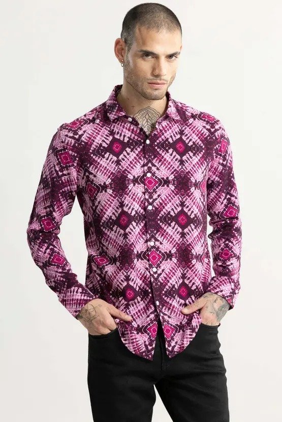 Men Slim Fit Printed Spread Collar Casual Shirt