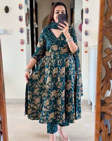 Women Rayon Floral Anarkali Kurta Set